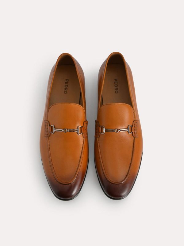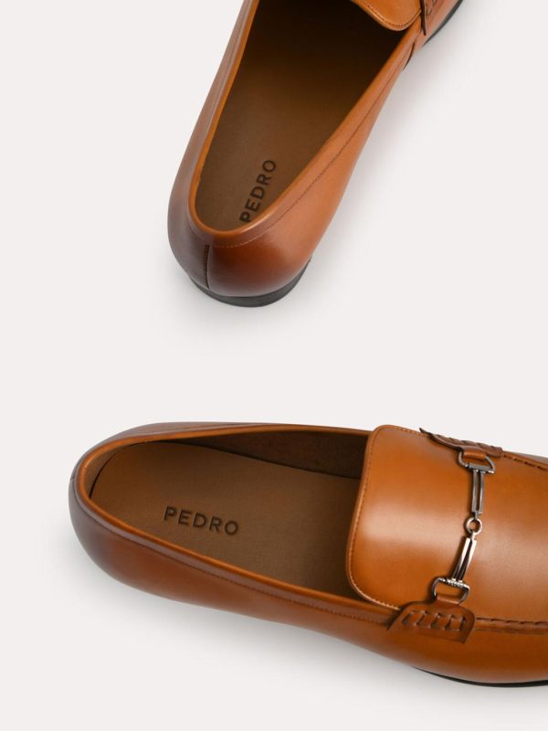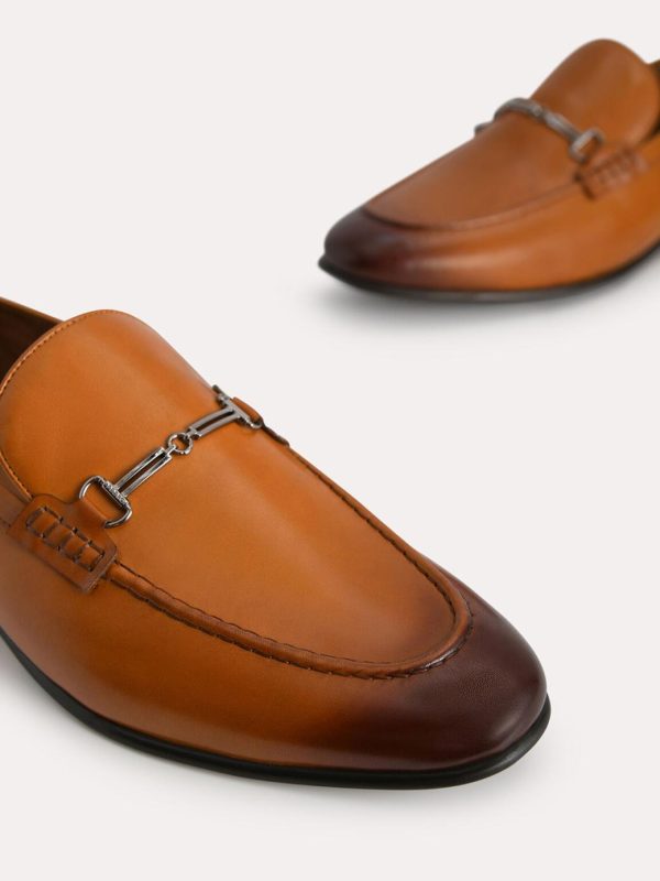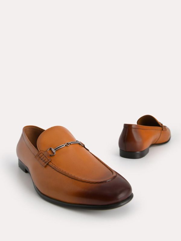 Slip-on these pair of leather loafers for that effortless look. The burnished leather exudes sophistication while the bit detailing adds a classy flair.