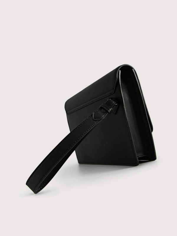 The clutch for the weekend. Fastened by magnetic closure, it opens up to a spacious compartment that fits your daily essentials.