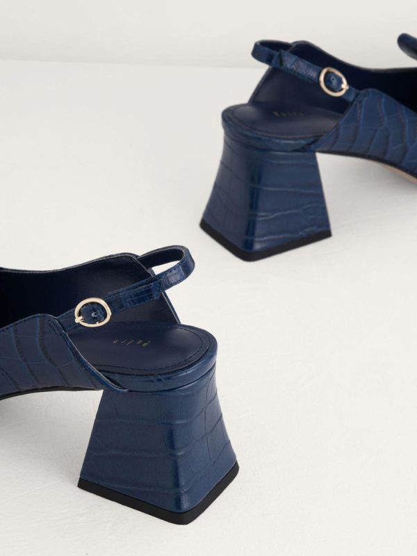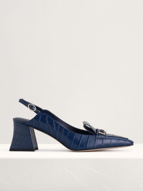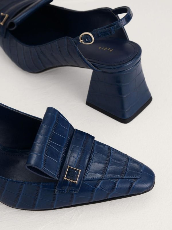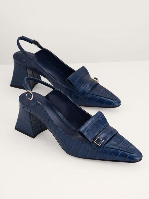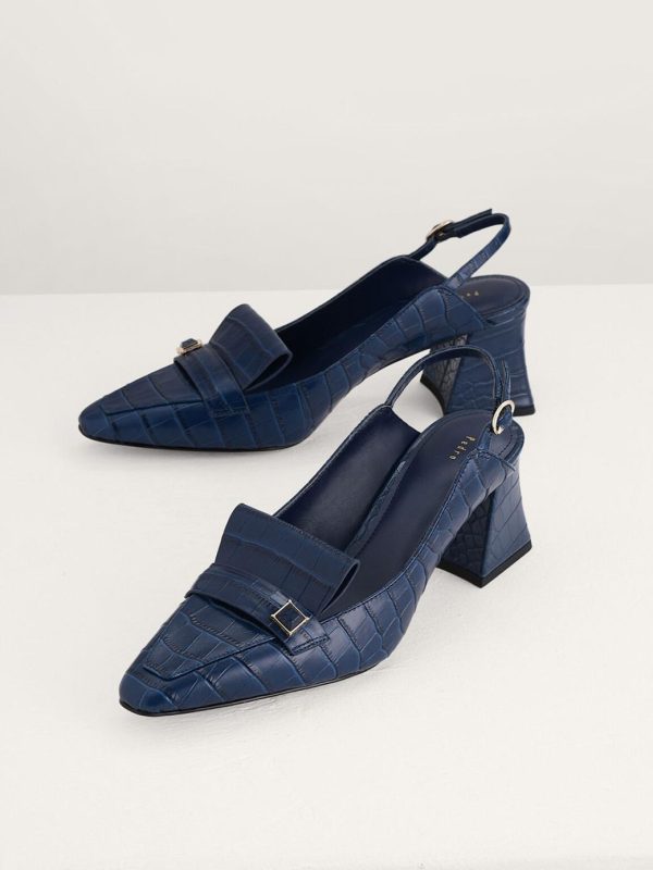 Leather slingback pumps with embellishment for a more versatile look. The pointed square-toe enhances business looks and the block heel lengthens your silhouette.