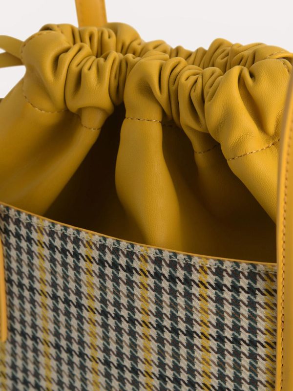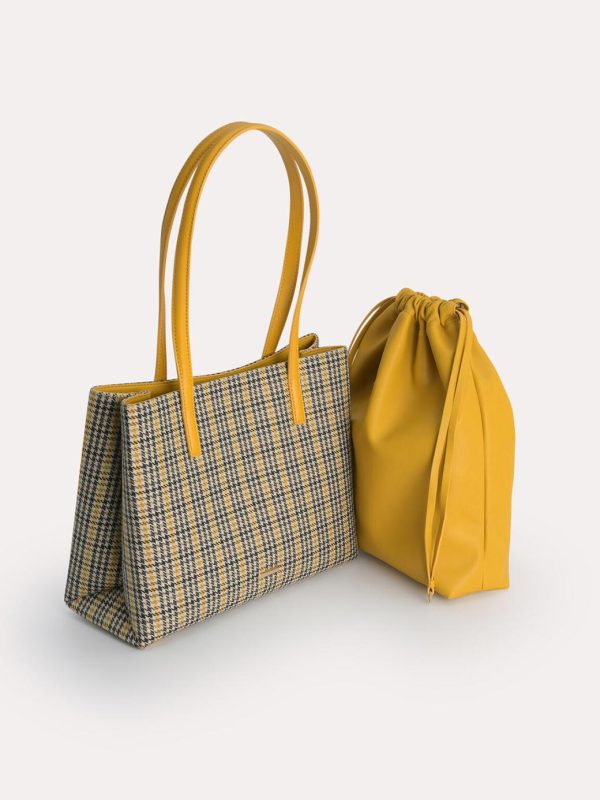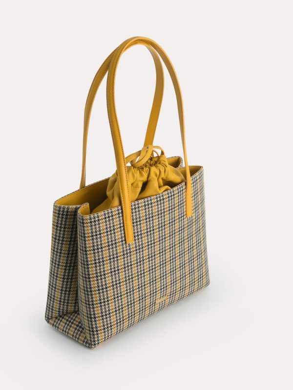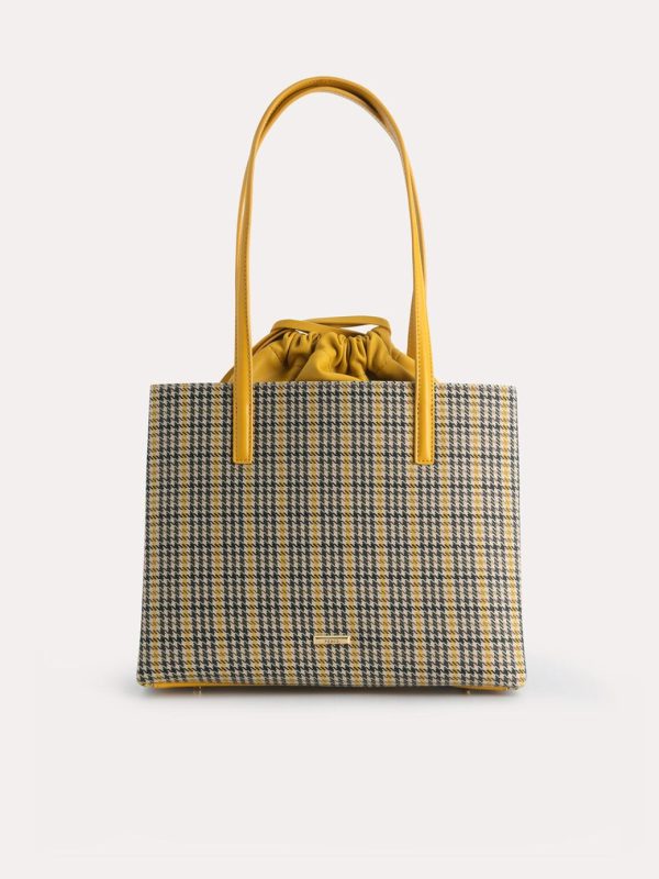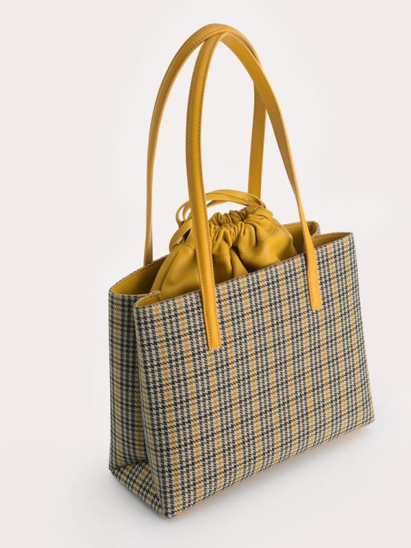 Add sophistication with a vintage flair to your everyday edits with this Houndstooth Tote Bag. They are designed with a drawstring closure that elevates the understated glamour.