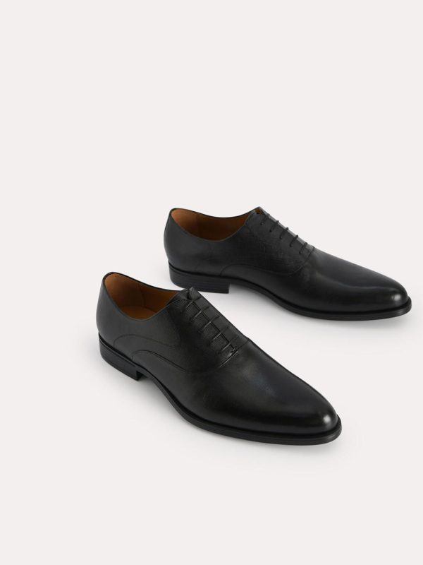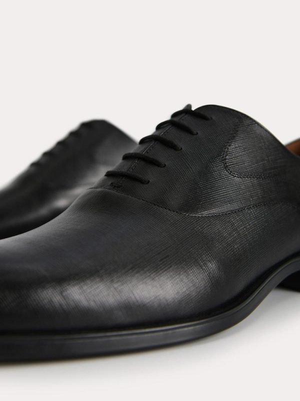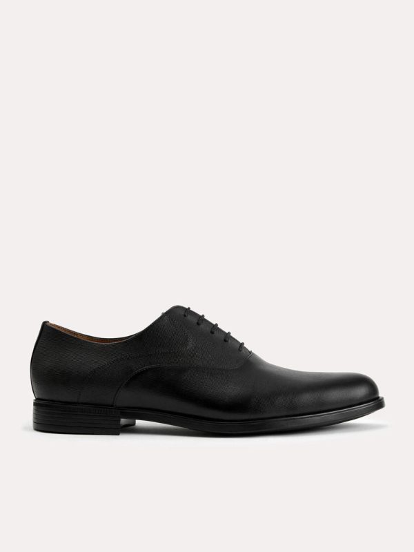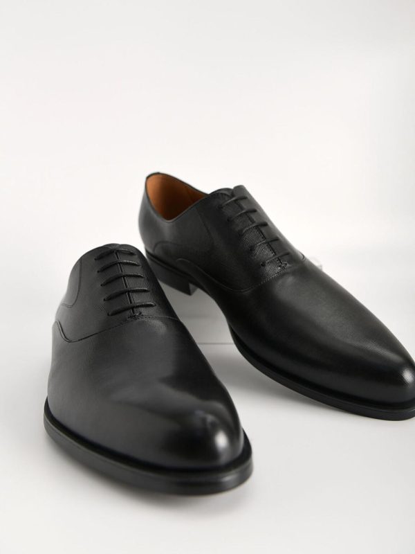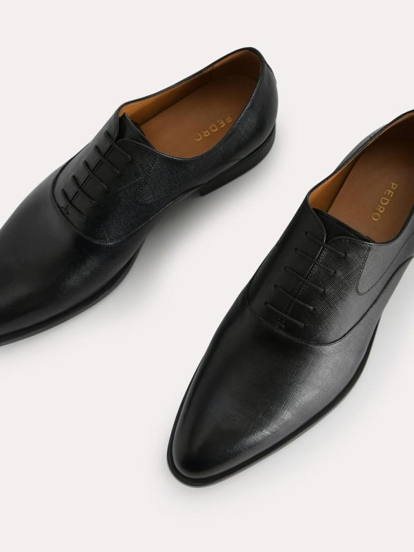 Designed for the modern man. These leather oxfords are crafted to a slightly pointed toe box with embossed texture for a luxurious appeal.