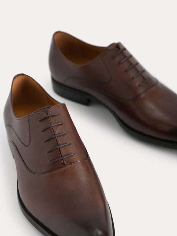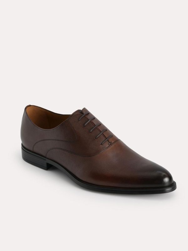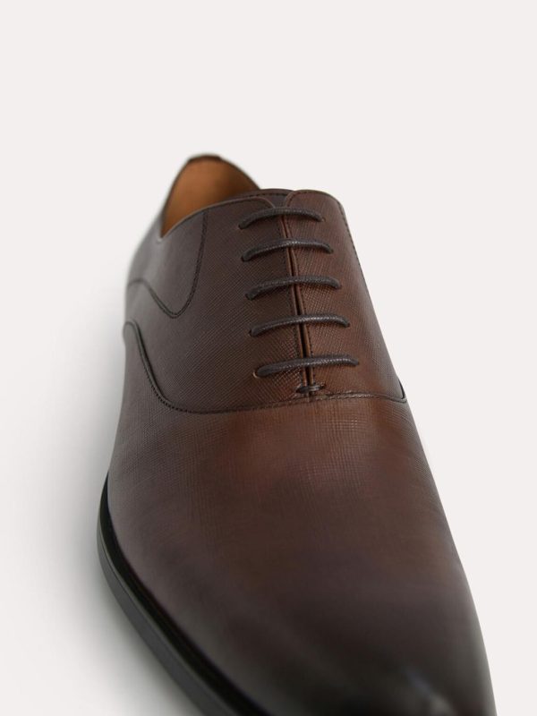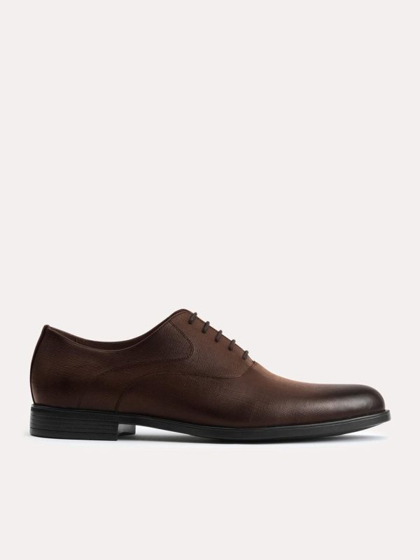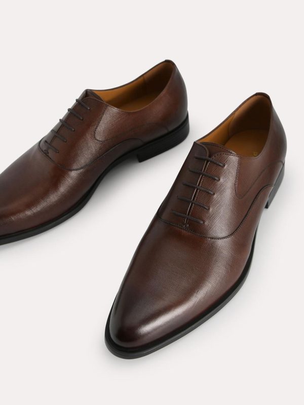 Designed for the modern man. These leather oxfords are crafted to a slightly pointed toe box with embossed texture for a luxurious appeal.